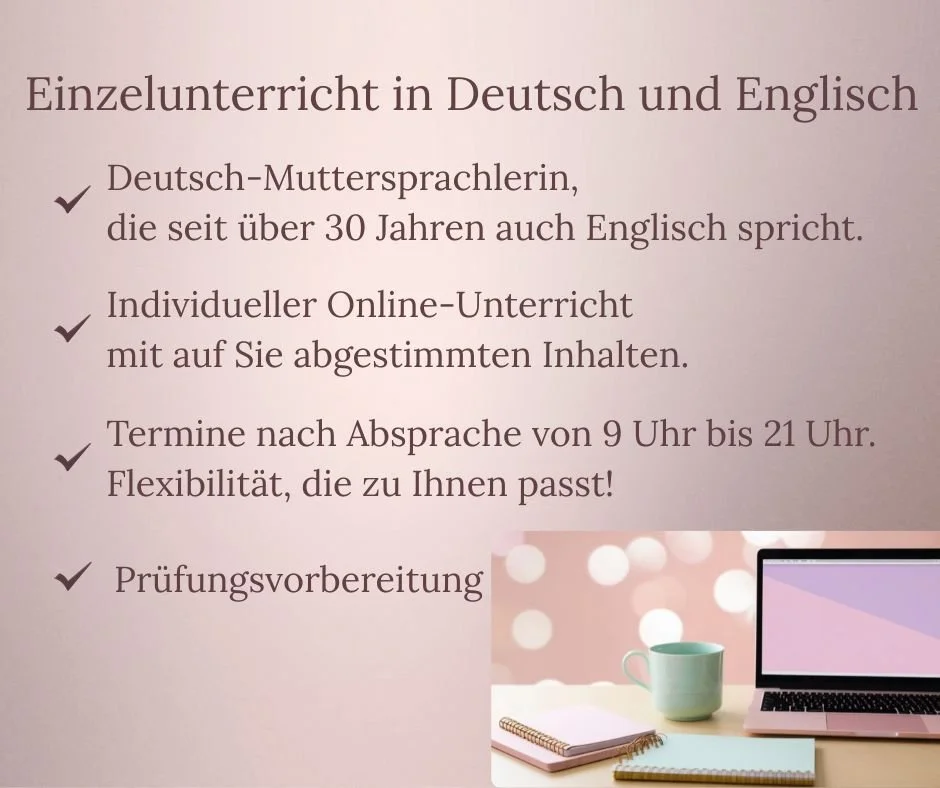In individuell auf Sie abgestimmten Lerneinheiten arbeiten wir gemeinsam an Ihrem persönlichen Ziel.