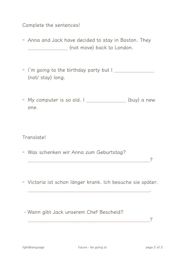 „Nur durch geregelte Übung könnte man vorwärtskommen.” - Johann Wolfgang von Goethe Categories: Select a Category Deutsch Übungen Konjugation Pronomen Akkusativ Verneinung Possessivartikel Modalverben trennbare Verben Verben mit Vokalwechsel English exercises conjugation simple present there is - there are present progressive simple present vs present progressive pronouns state verbs simple past there was - there were past progressive present perfect simple past vs present perfect if-sentences gerund will-future be going to lists English conversation topics Deutsch Übungen | English exercises | English conversation topics | answer sheet - there was - there were €1.50 there was - there were €1.50 Lösung - Modalverben Präsens vs. Präteritum Sale Price: €0.00 Original Price: €1.50 Sale Modalverben - Präsens vs Präteritum Sale Price: €0.00 Original Price: €1.50 Sale Lösung - Modalverben - Konjugation Präsens Sale Price: €0.00 Original Price: €1.50 Sale Modalverben - Konjugation Präsens Sale Price: €0.00 Original Price: €1.50 Sale Possessivartikel - Beispiel Familie Sale Price: €0.00 Original Price: €1.50 Sale Lösung - Possessivartikel - Beispiel Familie €1.50 Lösung - Possessivartikel €0.00 Possessivartikel Sale Price: €0.00 Original Price: €1.50 Sale Lösung - Verneinung mit nicht €0.00 Verneinung mit nicht Sale Price: €0.00 Original Price: €1.50 Sale Lösung - Akkusativ - Beispiel Urlaub €1.50 Akkusativ - Beispiel Urlaub Sale Price: €0.00 Original Price: €1.50 Sale Lösung - Akkusativ - Beispiel Geschäft €1.50 Akkusativ - Beispiel Geschäft Sale Price: €0.00 Original Price: €1.50 Sale Lösung - Akkusativ - Beispiel Wandern €1.50 Akkusativ - Beispiel Wandern Sale Price: €0.00 Original Price: €1.50 Sale Lösung - Akkusativ - Beispiel Fitnessstudio €1.50 Akkusativ - Beispiel Fitnessstudio Sale Price: €0.00 Original Price: €1.50 Sale Lösung - Akkusativ - Beispiel Arbeit €1.50 Akkusativ - Beispiel Arbeit Sale Price: €0.00 Original Price: €1.50 Sale answer sheet - there is - there are €1.50 there is - there are Sale Price: €0.00 Original Price: €1.50 Sale Lösung - Pronomen - Nominativ - Akkusativ €1.50 Pronomen - Nominativ - Akkusativ €1.50 Lösung - Verben mit Vokalwechsel Sale Price: €0.00 Original Price: €1.50 Sale Verben mit Vokalwechsel Sale Price: €0.00 Original Price: €1.50 Sale Lösung - trennbare Verben €1.50 trennbare Verben €1.50 Lösung - Konjugation haben - sein - Präsens - Präteritum €0.00 Konjugation haben - sein - Präsens - Präteritum €0.00 Konjugation Template Sale Price: €0.00 Original Price: €1.50 Sale Lösung - Konjugation €1.50 Konjugation Sale Price: €0.00 Original Price: €1.50 Sale Lösung - Die Verben wohnen, kommen, heißen €1.50 Die Verben wohnen, kommen, heißen Sale Price: €0.00 Original Price: €1.50 Sale there was - there were €1.50 answer sheet - there was - there were €1.50 answer sheet - there is - there are €1.50 there is - there are Sale Price: €0.00 Original Price: €1.50 Sale answer sheet - if-sentence type III €1.50 if-sentences type III €1.50 answer sheet - What do you usually do? Sale Price: €0.00 Original Price: €1.50 Sale What do you usually do? Sale Price: €0.00 Original Price: €1.50 Sale answer sheet - pronouns €1.50 pronouns €1.50 possessive pronouns Sale Price: €0.00 Original Price: €1.50 Sale overview pronouns Sale Price: €0.00 Original Price: €1.50 Sale 100 irregular verbs Sale Price: €0.00 Original Price: €1.50 Sale answer sheet - be going to €1.50 be going to €1.50 answer sheet - will-future €1.50 will-future €1.50 gerund €1.50 answer sheet - if-sentences type II €1.50 if-sentences type II €1.50 answer sheet - if-sentences type I €1.50 if-sentences type I €1.50 answer sheet - simple past vs present perfect €1.50 simple past vs present perfect €1.50 answer sheet - present perfect since & for €1.50 present perfect - since & for €1.50 answer sheet - present perfect €1.50 present perfect €1.50 answer sheet - past progressive €1.50 past progressive €1.50 answer sheet - simple past €1.50 simple past €1.50 answer sheet - simple past - be €1.50 simple past - be Sale Price: €0.00 Original Price: €1.50 Sale answer sheet - state verbs €1.50 state verbs €1.50 answer sheet - simple present vs present progressive €1.50 simple present vs present progressive €1.50 answer sheet - present progressive €1.50 present progressive €1.50 answer sheet - simple present €1.50 simple present €1.50 answer sheet - simple present - be + not €1.50 simple present - be + not Sale Price: €0.00 Original Price: €1.50 Sale answer sheet - simple present - be €1.50 simple present - be Sale Price: €0.00 Original Price: €1.50 Sale answer sheet - conjugation €0.00 conjugation template €0.00 conjugation €0.00