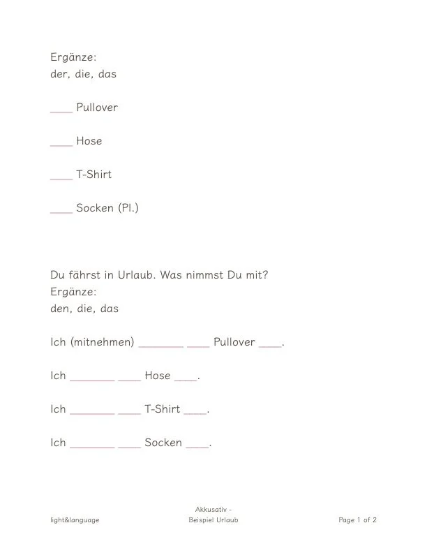 Store › Possessivartikel - Beispiel Familie Image 1 of 1 Possessivartikel - Beispiel Familie Sale Price: €0.00 Original Price: €1.50 Add To Cart Added! You Might Also Like Modalverben - Konjugation Präsens Sale Price: €0.00 Original Price: €1.50 Sale Akkusativ - Beispiel Urlaub Sale Price: €0.00 Original Price: €1.50 Sale Verneinung mit nicht Sale Price: €0.00 Original Price: €1.50 Sale Konjugation Template Sale Price: €0.00 Original Price: €1.50 Sale Lösung - Konjugation €1.50